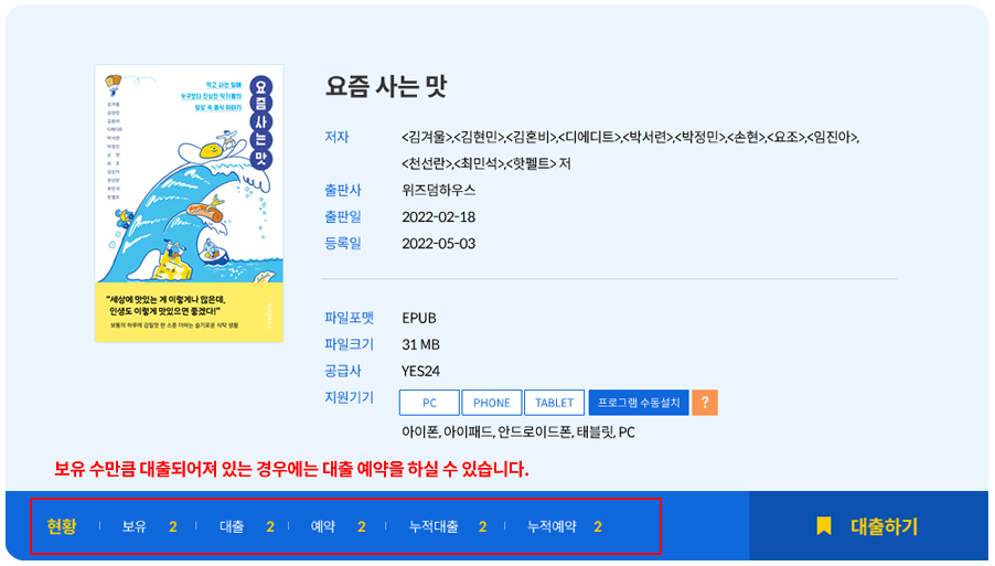 ※ 위의 전자책이용규정에 따라 대출, 연장 및 예약 가능합니다.